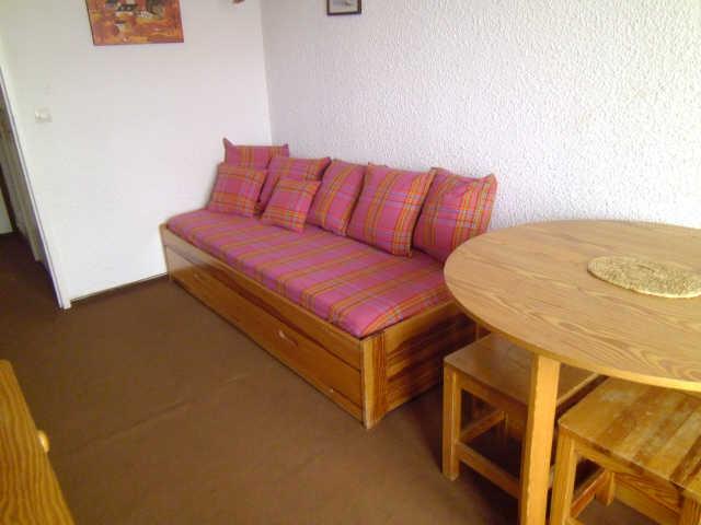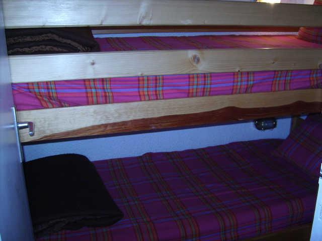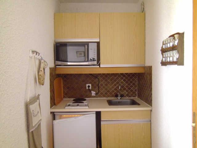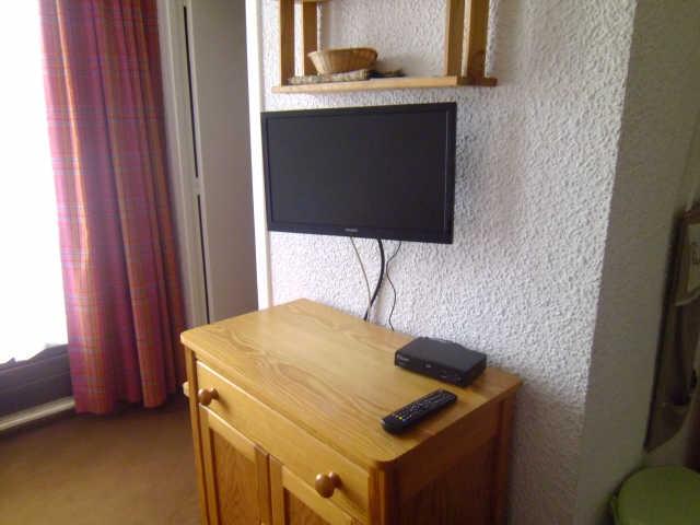 Studio cabine de 22m², 4ème étage avec ascenseur. Orienté Nord avec balcon vue sur station et Massif des Ecrins. Le séjour est équipé de lits gigogne pour 2 personnes, téléviseur. Cabine : 2 lits 1 place superposés. Le coin cuisine comprend un réfrigérateur, 2 plaques de cuisson électriques, un four combiné micro-ondes, une cafetiière, un grille pain et un mixer. Penderie et placard dans l'entrée. Salle de bain avec baignoire et toilettes.