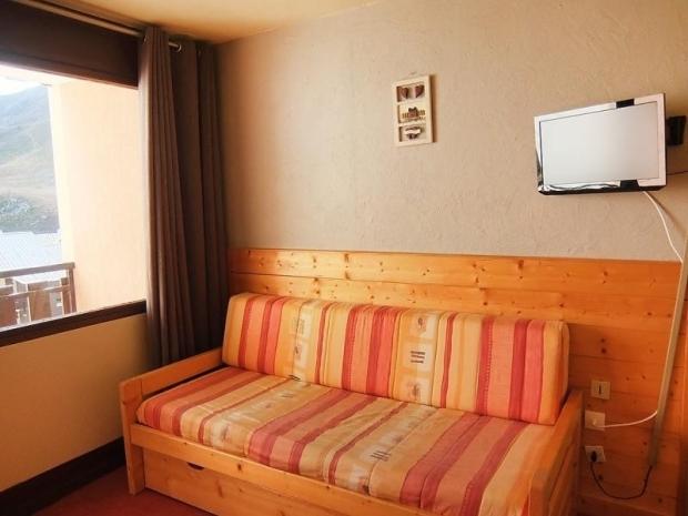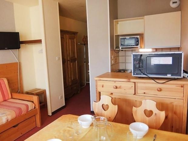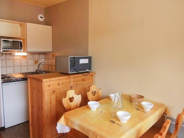 Apt 2 pièces 26 m2 au 4ème étage: séjour/salle à manger avec 1 divan-lit double (80 cm). 1 chambre avec 1 x 2 lits superposés (80 cm). Coin cuisine (2 plaques de cuisson, mini-four). Bain/WC. Chauffage électrique. Balcon, situation sud. Maximum 1 animal/ chien autorisé. Entrée B. Inclus: Garantie satisfaction gratuite, Animal Disponible sur le site avec supplément: Poussette 3.0EUR par jour, Réhausseur bébé (pour enfants) 3.0EUR par jour, Mat Ski Adulte 6 jrs Alpin Bleu (skis et chaussures) 60.0EUR prix forfaitaire, WIFI (connexion 3/4G max. 10 appareils – limité à 1 GO par jour) 5.6EUR par jour, Mat Ski Junior 7-11 ans 6 jours (skis et chaussures) 36.0EUR prix forfaitaire, Mat Ski Kid 2-6 ans 6 jours (skis et chaussures) 30.0EUR prix forfaitaire, Mat Ski Adulte 6 jrs Alpin Noir (skis et chaussures) 96.0EUR prix forfaitaire, Mat Ski Adulte 6 jrs Alpin rouge (skis et chaussures) 84.0EUR prix forfaitaire, Linge de lit (premier jeu) 10.0EUR par personne, Serviettes (premier jeu) 7.0EUR par personne, Lit bébé (jusqu'à 2 ans) 3.0EUR par jour Services supplémentaires obligatoires sur le site: Taxe de séjour 1.0EUR par personne et par jour, Nettoyage final 15.0EUR par personne, Taxe de séjour enfants (par personne et par jour), Taxe de séjour bébés (0-2) (par personne et par jour)