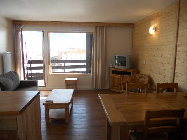 Il se compose d'une grande entrée avec un coin montagne avec 1 lit mezzanine 2 personnes et 1 lit simple en dessous, une salle d'eau, wc indépendant, un coin cuisine équipé avec lave-vaisselle, four, micro-ondes et un séjour spacieux avec un convertible 2 personnes,TV et lecteur DVD donnant sur un agréable balcon exposé plein sud avec une belle vue sur les pistes.