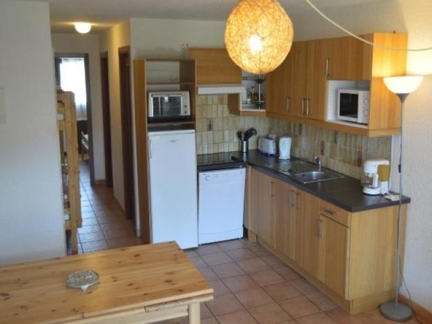 L'appartement est composé de deux chambres avec lit double en 140cm, un coin montagne dans le couloir avec des lits superposés et d'un séjour avec canapé convertible, télévision et balcon ouest avec vue sur la montagne.