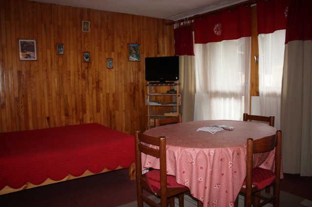 Cet appartement 2 pièces de 36m² pour 5 personnes, possédant un casier à skis et un balcon exposé sud, se situe au 2ème étage d'une résidence au calme, proche des commerces, d'un parking public et du télécabine.