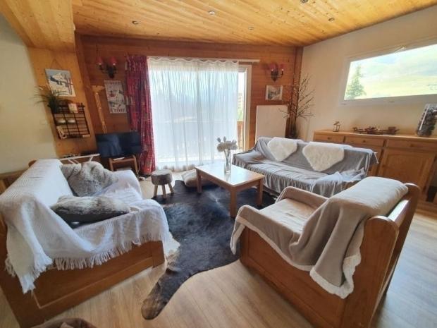 Cette copropriété au Village 1800 avec accès privatif, bénéficie d'une vue imprenable sur le domaine skiable et la station des Deux Alpes.