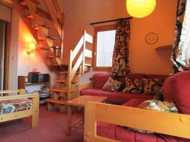 Appartement 3 pièces + mezzanine en duplex équipé pour 8 personnes d'environ 65 m², exposé est avec balcon, côté vallée et Mont-Blanc au 1er étage côté entrée et 2ème étage côté balcon.