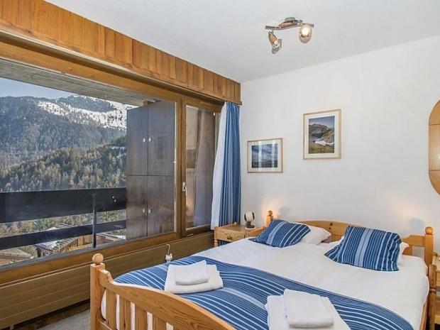 "Le Bosquet 18", appartement sur 2 niveaux 3 pièces 70 m2 au 1er étage. Aménagement confortable et agréable: à l'étage inférieur: 1 chambre double. Sortie sur le balcon. 1 chambre avec 2 lits. À l'étage supérieur: séjour/salle à manger avec 1 divan-lit double (longueur 200 cm), cheminée, coin repas, TV (câblée), lecteur CD et DVD. Sortie sur le balcon. (4 plaques de cuisson, four, lave-vaisselle, four micro-ondes, cafetière électrique) avec bar. Bain/douche/WC. Balcon 8 m2, situation sud, 2 balcons 8 m2, situation nord. Mobilier de balcon, barbecue, chaises longues (2). Belle vue panoramique sur les montagnes et la vallée. A disposition: fer à repasser. Internet (Connexion WIFI, en sus). Place de parking No 18 (couvert). Veuillez noter: maison non-fumeur. Entrée privée.