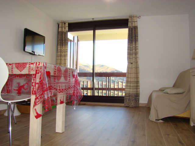 Studio centre station composé d'une entrée, coin montagne avec 2 lits superposés (2 couchages), SdE/wc, kitchenette ouverte sur séjour/salon disposant d'un canapé convertible 160 (2 couchages). balcon, casier à ski, proche des remontées mécaniques.