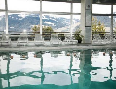 Une piscine panoramique couverte et chauffée. Résidence dans un ancien palace et un grand chalet savoyard. Service de restauration et espace bien-être sur place.