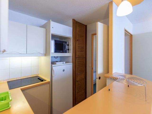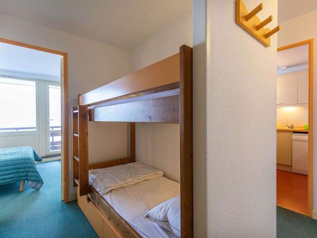 Situé au 7ème étage, balcon Sud avec vue sur les pistes. Séjour équipé d’une TV, d’un canapé lit pour deux personnes en 140, coin cabine avec lits superposés (2x90 cm) en entrée et une chambre avec lit en 140. Cuisine ouverte avec plaques vitro, micro-ondes multifonctions, lave-vaisselle, frigo 200 litres avec congélateur, grille pain, bouilloire, cafetière à filtre et appareil à raclette.