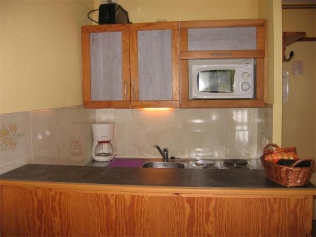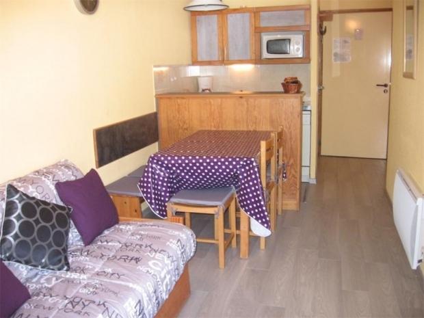 ApptF2, 28,50m² env., situé au 4ème étage, avec ascenseur et parking en sous-sol. Il comprend : un séjour/salon (TV écran plat, lecteur DVD, canapé lit tiroir 2 pers.), balcon exposé N/W avec vue sur pistes et montagnes, un coin cuisine équipé séparé par un passe plats (3 plaques chauff., MO, LV), 1 chambre avec séparation (3 lits 80), une salle d'eau, WC indépendants. Parquet au sol, sauf salle de bains, wc et coin cuisine : plastique. Casier à skis. Emplacement de parking couvert. En plein centre de la station.