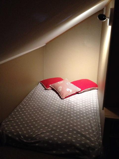 Une mezzanine avec 2 lits simple, et une chambrette aveugle avec un couchage pour 2 personnes.