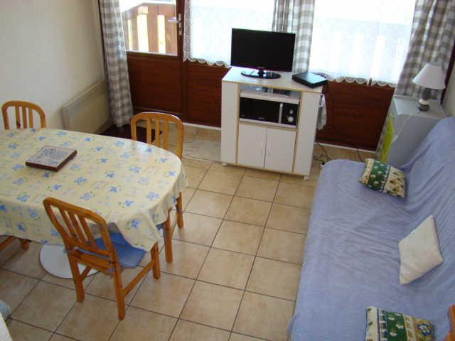 Appartement de type 2 composé d'une entrée, coin montagne avec lits superposés en 90 (2 couchages), une chambre avec lit double en 140 (2 couchages), SdB, wc, kitchenette équipée ouverte sur séjour avec canapé convertible en 140 (2 couchages). Balcon, casier à ski, à deux pas des remontées mécaniques.