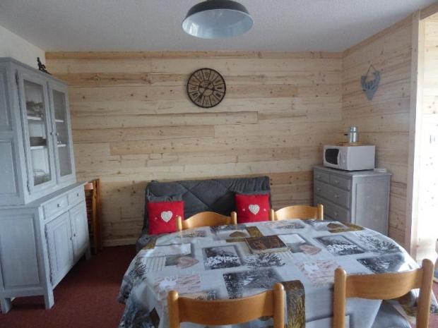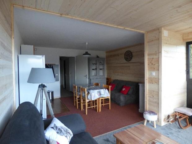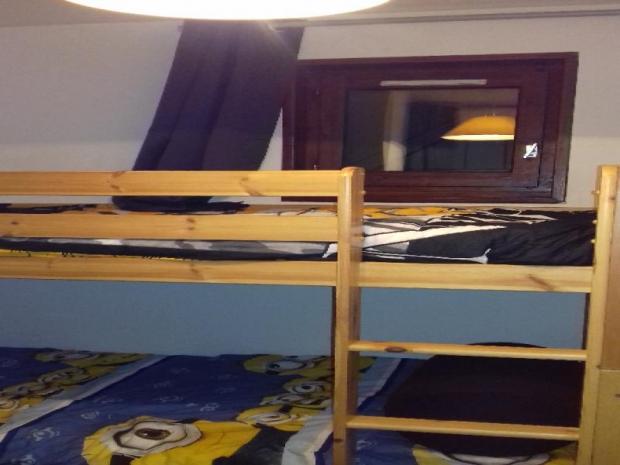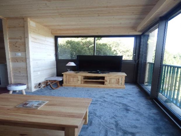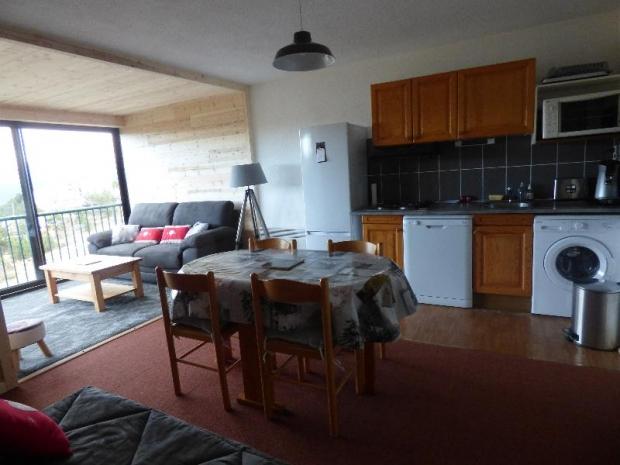 Il comprend : entrée avec placard/penderie, grand séjour (table, chaises, canapé, TV) exposition Sud Est bénéficiant d'une très belle vue sur lac et montagne, coin cuisine équipé (réfrigérateur/congélateur, 4 plaques électriques, four, lave-vaisselle, lave-linge, rangement), salle de bains et WC indépendants, 2 cabines avec fenêtre: l'une avec 2 lits superposés, l'autre avec 1 lit 140.