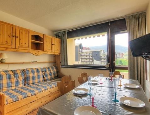 Apt 2 pièces 31 m2, au rez-de-chaussée. Aménagement confortable et agréable: séjour/salle à manger avec 1 lit gigogne (2 pers. 2 x 80 cm), TV. Sortie sur le balcon. 1 chambre avec 1 grand-lit (140 cm). Cabine avec 1 x 2 lits superposés (70 cm). Coin cuisine (lave-vaisselle, 2 plaques vitrocéramique, four micro-ondes, cafetière électrique). Bain/WC. Chauffage électrique. Balcon, situation sud. Vue sur les montagnes. Garage No 431. Maximum 1 animal/ chien autorisé. Bat C5. Inclus: Garage 1x, Animal Disponible sur le site avec supplément: Poussette 3.0EUR par jour, Réhausseur bébé (pour enfants) 3.0EUR par jour, Mat Ski Adulte 6 jrs Alpin Bleu (skis et chaussures) 60.0EUR prix forfaitaire, WIFI (connexion 3/4G max. 10 appareils – limité à 1 GO par jour) 7.0EUR par jour, Mat Ski Kid 2-6 ans 6 jours (skis et chaussures) 30.0EUR prix forfaitaire, Mat Ski Adulte 6 jrs Alpin Noir (skis et chaussures) 96.0EUR prix forfaitaire, Mat Ski Adulte 6 jrs Alpin rouge (skis et chaussures) 84.0EUR prix forfaitaire, Linge de lit (premier jeu) 10.0EUR par personne, Serviettes (premier jeu) 7.0EUR par personne, Mat Ski Junior 7-11 ans 6 jours (skis et chaussures) 72.0EUR prix forfaitaire, Lit bébé (jusqu'à 2 ans) 3.0EUR par jour Services supplémentaires obligatoires sur le site: Taxe de séjour enfants (par personne et par jour), Taxe de séjour 0.83EUR par personne et par jour, Taxe de séjour bébés (0-2) (par personne et par jour), Nettoyage final 11.0EUR par personne
