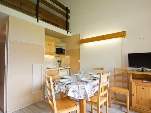 Apt 2 pièces 35 m2 sur 2 niveaux au 4ème étage. Aménagement agréable: séjour/salle à manger avec 1 lit gigogne (2 pers. 2 x 80 cm), écran plat et volet roulant électrique. Sortie sur le balcon. Cabine avec 1 x 2 lits superposés (70 cm). Coin cuisine (mini-four, lave-vaisselle, 2 plaques vitrocéramique, four micro-ondes, cafetière électrique). Bain/WC. Chauffage électrique. À l'étage supérieur: galerie avec 2 lits (80 cm). Balcon, situation sud. Vue sur les montagnes et les pistes de ski. Maximum 1 animal/ chien autorisé. Bat C5, à 30m des pistes de ski. Inclus: Garantie satisfaction gratuite, Animal Disponible sur le site avec supplément: Poussette 3.0EUR par jour, Réhausseur bébé (pour enfants) 3.0EUR par jour, Mat Ski Adulte 6 jrs Alpin Bleu (skis et chaussures) 60.0EUR prix forfaitaire, WIFI (connexion 3/4G max. 10 appareils – limité à 1 GO par jour) 5.6EUR par jour, Mat Ski Junior 7-11 ans 6 jours (skis et chaussures) 36.0EUR prix forfaitaire, Mat Ski Kid 2-6 ans 6 jours (skis et chaussures) 30.0EUR prix forfaitaire, Mat Ski Adulte 6 jrs Alpin Noir (skis et chaussures) 96.0EUR prix forfaitaire, Mat Ski Adulte 6 jrs Alpin rouge (skis et chaussures) 84.0EUR prix forfaitaire, Linge de lit (premier jeu) 10.0EUR par personne, Serviettes (premier jeu) 7.0EUR par personne, Lit bébé (jusqu'à 2 ans) 3.0EUR par jour Services supplémentaires obligatoires sur le site: Taxe de séjour 1.0EUR par personne et par jour, Taxe de séjour enfants (par personne et par jour), Taxe de séjour bébés (0-2) (par personne et par jour), Nettoyage final 12.0EUR par personne