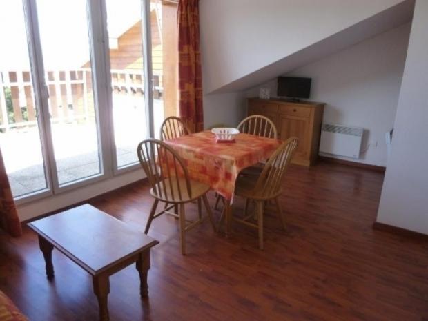 Studio situé au 6° étage avec ascenseur dans résidence avec aménagement confortable. Séjour avec coin salon et banquette lit gigogne (2 lits en 90 cm) donnant sur terrasse. Coin cuisine fonctionnelle avec 2 plaques de cuisson. 1 chambre de type alcôve avec lits superposés de 90.