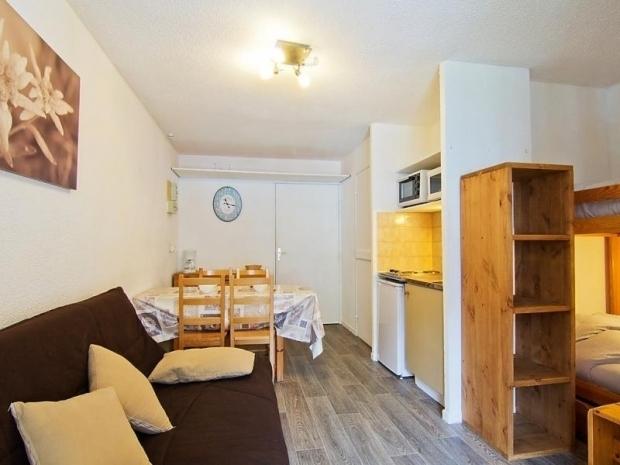 Studio 24 m2 au 3ème étage. Séjour/salle à manger avec 1 x 2 lits superposés, TV (écran plat). 1 petite chambre ouverte avec 1 grand-lit. Coin cuisine (2 plaques de cuisson, cafetière électrique, combiné micro-ondes). Bain/WC. Balcon, situation nord-est. Maximum 1 animal/ chien autorisé. Inclus: Garantie satisfaction gratuite, Animal Disponible sur le site avec supplément: Poussette 3.0EUR par jour, Réhausseur bébé (pour enfants) 3.0EUR par jour, Mat Ski Adulte 6 jrs Alpin Bleu (skis et chaussures) 60.0EUR prix forfaitaire, WIFI (connexion 3/4G max. 10 appareils – limité à 1 GO par jour) 5.6EUR par jour, Mat Ski Junior 7-11 ans 6 jours (skis et chaussures) 36.0EUR prix forfaitaire, Mat Ski Kid 2-6 ans 6 jours (skis et chaussures) 30.0EUR prix forfaitaire, Mat Ski Adulte 6 jrs Alpin Noir (skis et chaussures) 96.0EUR prix forfaitaire, Mat Ski Adulte 6 jrs Alpin rouge (skis et chaussures) 84.0EUR prix forfaitaire, Linge de lit (premier jeu) 10.0EUR par personne, Serviettes (premier jeu) 7.5EUR par personne, Lit bébé (jusqu'à 2 ans) 3.0EUR par jour Services supplémentaires obligatoires sur le site: Taxe de séjour 1.0EUR par personne et par jour, Nettoyage final 15.0EUR par personne, Taxe de séjour enfants (par personne et par jour), Taxe de séjour bébés (0-2) (par personne et par jour)