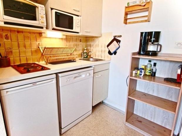 Equipée d'un réfrigérateur, de plaques électriques, d'un mini four, d'un micro-ondes et d'un lave vaisselle.