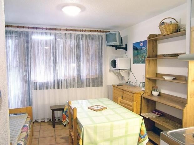 Studio 25 m2, au rez-de-chaussée, aménagement agréable: séjour/salle à manger avec TV. Cabine avec 1 grand-lit (140 cm). Entrée avec 2 x 1 lits superposés (80 cm). Coin cuisine (2 plaques de cuisson, mini-four, four micro-ondes). Bain/WC. Terrasse, situation sud. Place de parking près de la maison. Veuillez noter: logement pour non fumeurs. Inclus: Garantie satisfaction gratuite Disponible sur le site avec supplément: Poussette 3.0EUR par jour, Réhausseur bébé (pour enfants) 3.0EUR par jour, Mat Ski Adulte 6 jrs Alpin Bleu (skis et chaussures) 60.0EUR prix forfaitaire, WIFI (connexion 3/4G max. 10 appareils – limité à 1 GO par jour) 5.6EUR par jour, Mat Ski Junior 7-11 ans 6 jours (skis et chaussures) 36.0EUR prix forfaitaire, Mat Ski Kid 2-6 ans 6 jours (skis et chaussures) 30.0EUR prix forfaitaire, Mat Ski Adulte 6 jrs Alpin Noir (skis et chaussures) 96.0EUR prix forfaitaire, Mat Ski Adulte 6 jrs Alpin rouge (skis et chaussures) 84.0EUR prix forfaitaire, Serviettes (premier jeu) 7.0EUR par personne, Linge de lit (premier jeu) 13.0EUR par personne, Lit bébé (jusqu'à 2 ans) 3.0EUR par jour Services supplémentaires obligatoires sur le site: Taxe de séjour enfants (par personne et par jour), Taxe de séjour 0.83EUR par personne et par jour, Taxe de séjour bébés (0-2) (par personne et par jour), Nettoyage final 14.0EUR par personne
