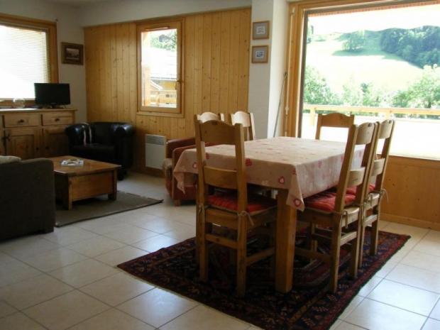 L'appartement situé au RDC de la résidence Jade 2, au Grand-Bornand, bénéficie d'une grande terrasse fermée de 65m² doublée d'un espace vert.