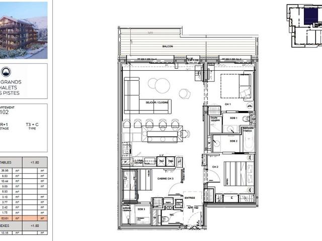 Situation : Sublime appartement skis aux pieds situé au Rond Point des Pistes