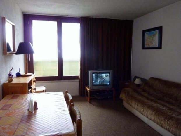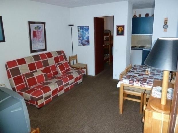 Appartement situé au 7ème étage avec ascenseur (accès résidence par escaliers), surface de 28m² avec balcon, exposition pistes, confort moyen. Séjour équipé d?un téléviseur, d?un canapé clic clac pour deux personnes. Coin nuit avec trois lits superposés en 70cm. Moquette au sol. Cuisine ouverte sur séjour, avec plaques électriques 4 feux, micro-ondes, frigo 110 litres, cafetière à filtre. Salle de bain comprenant : baignoire et lavabo. Toilettes séparées. Casier à ski en RDC. Parking couvert (hauteur maximum 1m80) résidence Les horizons. Animaux non admis.