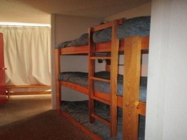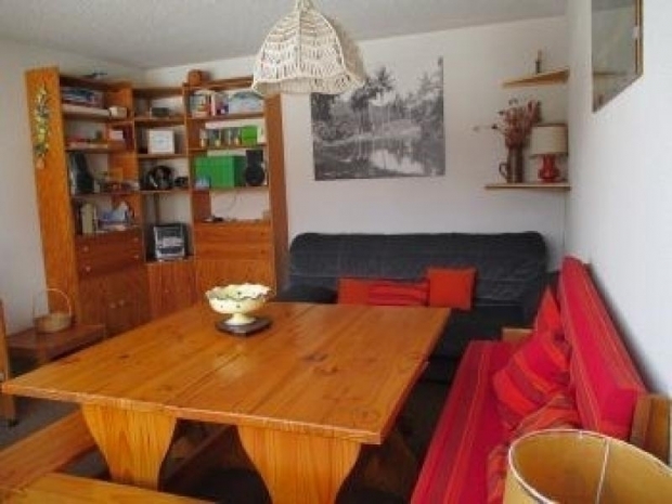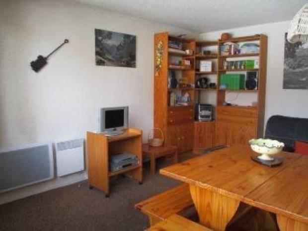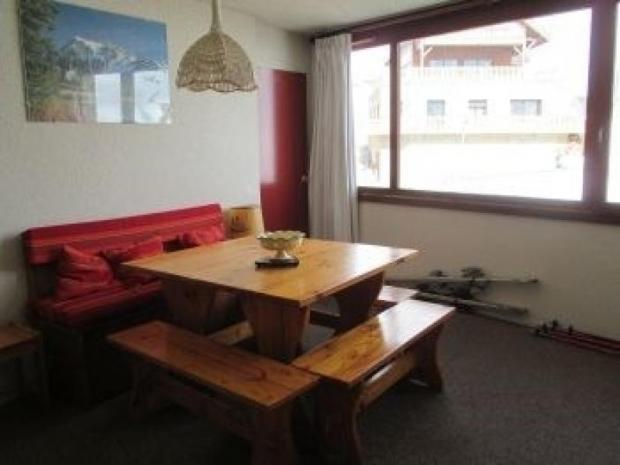 Au 7ème étage avec ascenseur (accès résidence par escaliers avant ascenseur, 23 marches), studio confort moyen, lumineux, exposition Est sans balcon (arrière de l?immeuble). Séjour équipé d?un téléviseur, lecteur DVD, d?un canapé clic clac deux personnes en 140. Coin nuit avec 2 lits superposés en 70 cm. Kitchenette fermée avec plaques vitro céramiques 4 feux, micro-ondes multi-fonction, mini four électrique, cafetière filtre, frigo 150 litres. Salle de bains. Toilettes séparées. Casier à ski en RDC. Moquette au sol.