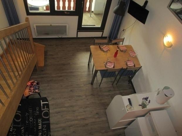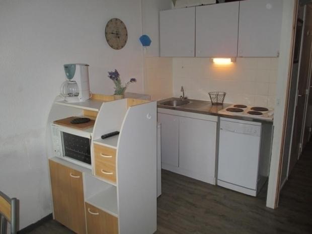 Au 3ème étage avec ascenseur, balcon, exposition Ouest, vue parking. Séjour équipé d?une télévision, d?un canapé lit « BZ », mezzanine ouverte sur séjour équipée de 2 lits en 90 et d?un lit en 140. Coin cuisine avec plaques électriques, micro-ondes multifonctions, grille pain, service à raclette, cafetière à filtre, lave vaisselle. Salle de douches comprenant une douche, un lavabo. Toilettes séparées. Sol en PVC.