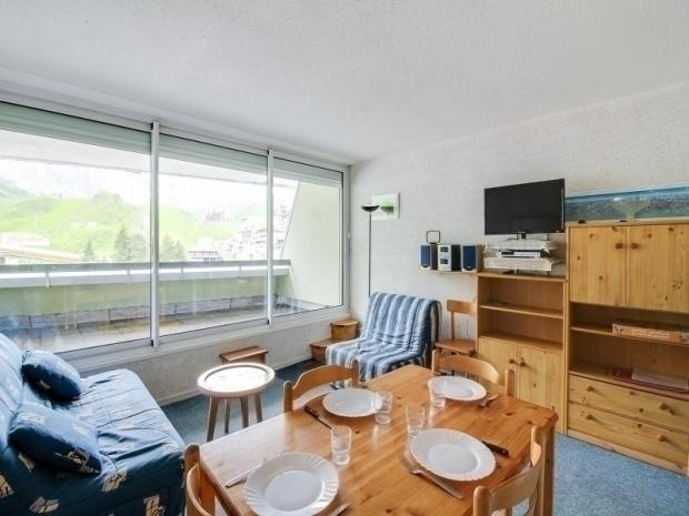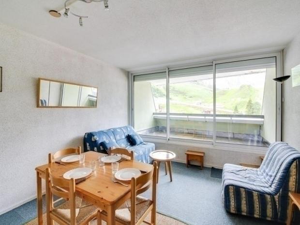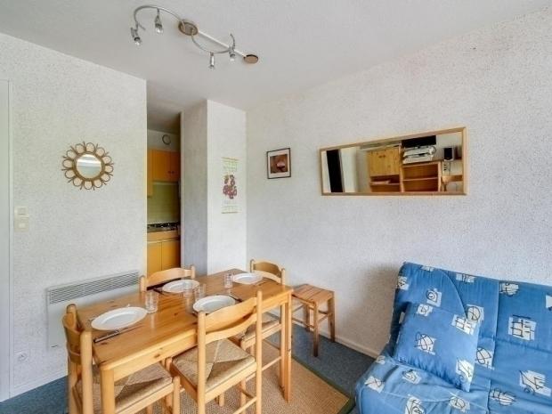 Situé au 3ème étage, grand balcon exposition Ouest (vue sur station et pistes). Séjour équipé d’une télévision, d’un canapé BZ deux personnes et d'un chauffeuse. Coin cabine avec lits superposés (3x70cm). Kitchenette ouverte sur séjour avec plaques vitro., micro-ondes, grand réfrigérateur, grille-pain, bouilloire, cafetière senséo et filtre, lave vaisselle et appareil à raclette. Salle de bain. Toilettes séparées. Casier à skis. Studio non fumeur.