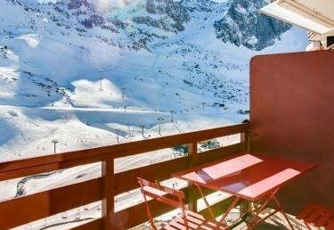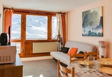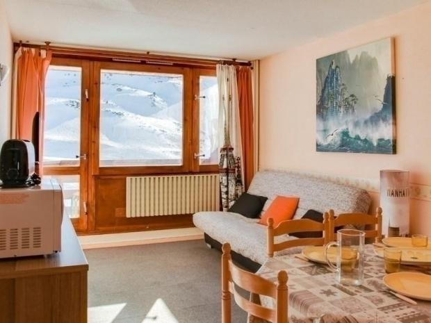 Appartement situé au 6ème étage, surface de 33 m² avec balcon exposition sud vue sur les pistes. Escalier intérieur accédant au séjour équipé d?une télévision, d?un canapé lit 2 places, chambre en exposition nord équipée de 2 x 2 lits superposés, Kitchenette fermée avec plaques électriques, four micro-ondes, frigo 110 litres, cafetière à filtre. Salle de bains comprenant : baignoire, lavabo, toilettes. Moquette au sol. Cellier de rangement face à l?appartement.