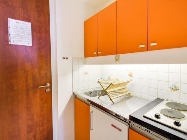 Kitchenette avec 2 plaques électriques, micro ondes, minifour, frigo 110 litres, cafetière à filtre, grille pain, bouilloire. Salle de bains comprenant : baignoire, lavabo, toilettes. Cellier de rangement en face du studio.