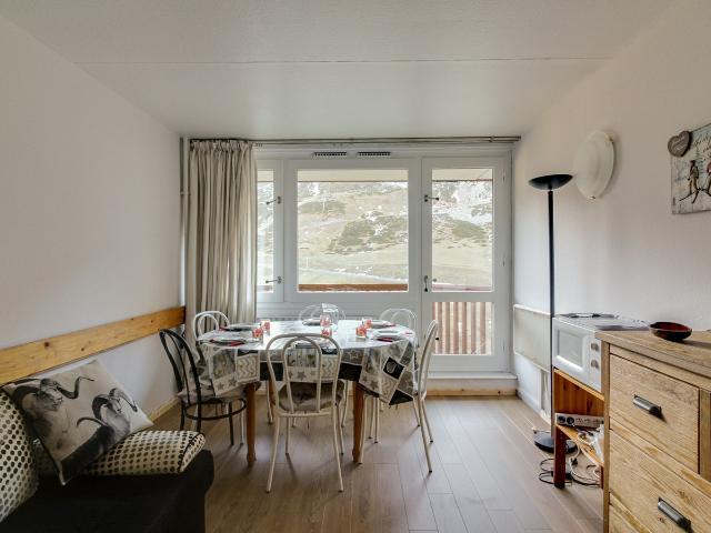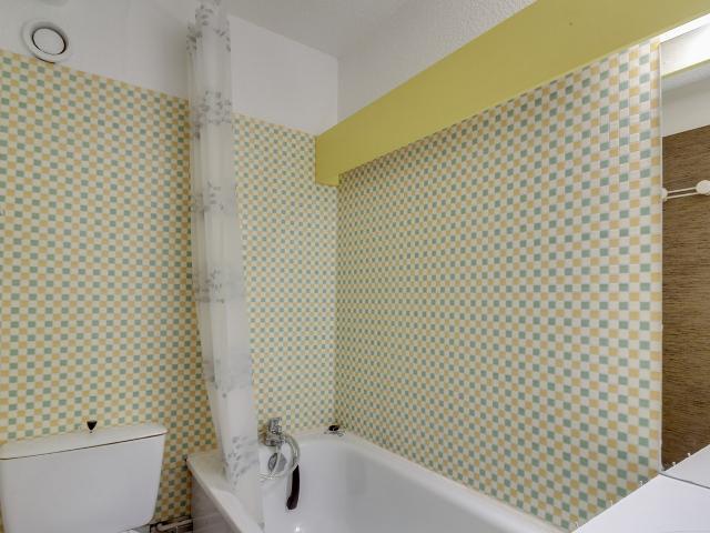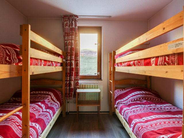 Appartement situé au 6ème étage, surface de 36 m² avec balcon exposition sud vue sur les pistes. Escalier intérieur accédant au séjour équipé d?une TV, canapé lit 2 pers en 140 cm, chambre en exposition nord équipée de 2 x 2 lits superposés (4x90). Kitchenette fermée avec plaques électriques 4 feux, micro-ondes, frigo 110 litres, cafetière à filtre. Salle de bains comprenant : baignoire, lavabo, toilettes. Sol en parquet. Cellier de rangement face à l?appartement.