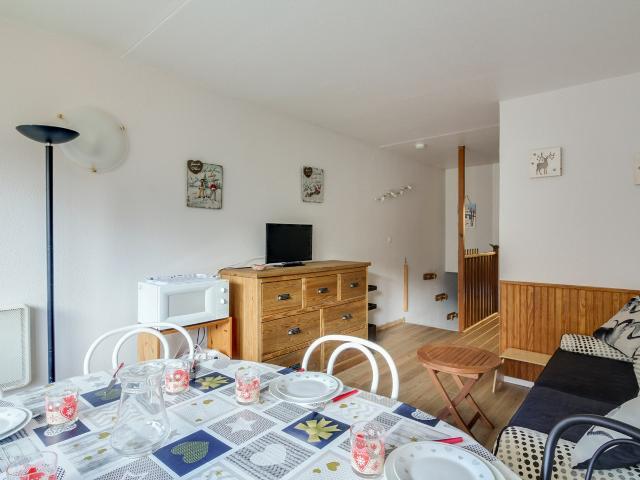 Situation : Appartement situé au 6ème étage, surface de 36 m² avec balcon exposition sud vue sur les montagnes. Escalier intérieur accédant au séjour équipé d?une TV, canapé lit 2 pers, chambre en exposition nord équipée de 2 x 2 lits superposés (4x90).