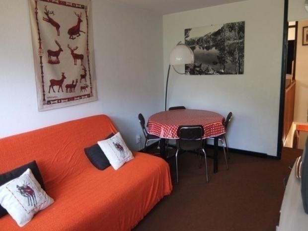 Appartement situé au 6ème étage, surface de 36 m² avec balcon, exposition sud, face aux montagnes. Escalier intérieur pour l?accès au séjour équipé d?un téléviseur, d?un canapé lit 2 places, une chambre au nord avec lit 140.et lits superposé (2x80) Kitchenette avec plaques électriques, four micro ondes, mini-four, frigo 110 litres, cafetière à filtre. Salle de bains comprenant : baignoire, lavabo, toilettes. Moquette au sol. Casier à skis face à l?appartement.