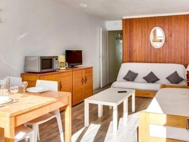Appartement de confort moyen, situé au 8ème étage, surface de 40 m² avec balcon exposition sud vue sur les pistes. Séjour équipé d?une TV, d'un canapé lit 2 places, chambre en exposition nord équipée d?un lit en 140, coin cabine sans fenêtre avec deux lits superposés.