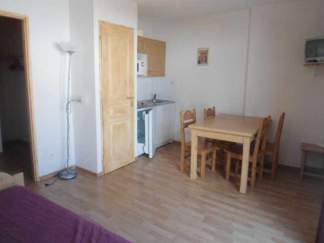 Il se compose d'une entrée avec un coin montagne avec 2 lits superposés, une salle d'eau avec wc, un coin cuisine équipé, un agréable séjour avec une banquette lit gigogne pour 2 personnes et une belle terrasse.