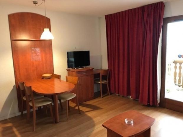 Studio cabine 4 couchages d'une surface de 28 m² avec terrasse, exposition sud. Séjour équipé d'un canapé lit en 160 (2x80), télévision et coin repas. Coin cabine dans l'entrée avec lits superposés (2x 90).