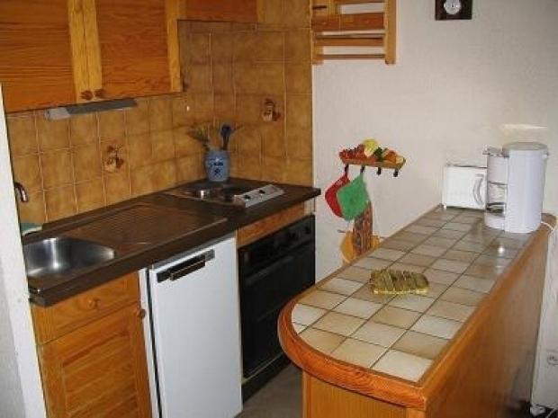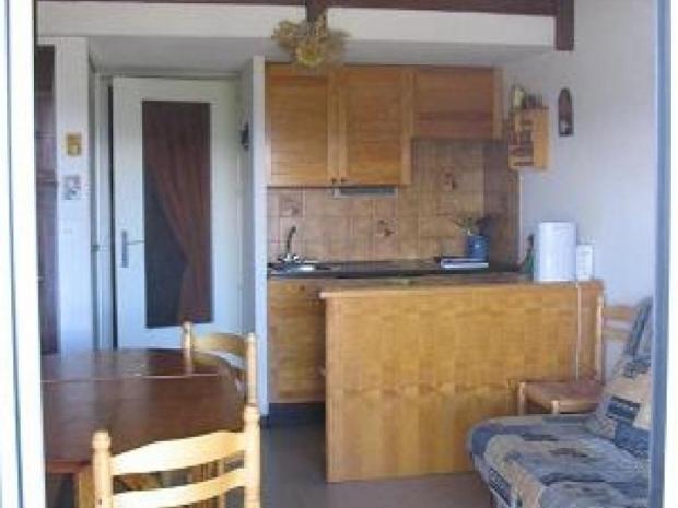 F2 cabine duplex 6 personnes 35 m² + loggia exposée Sud. Entrée coin cabine (2 lits en 80 superposés). Salle de bains, WC séparés, séjour coin cuisine équipé (four, réfrigérateur, 2 plaques chauffantes, LV...), canapé convertible 2 personnes (TV), mezzanine ouverte sur séjour avec lit 140.