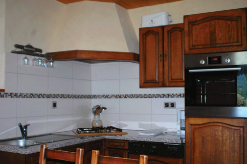 Kitchenette équipée avec réfrigérateur, 4 plaques électriques, micro-ondes/grill, four et lave vaisselle.