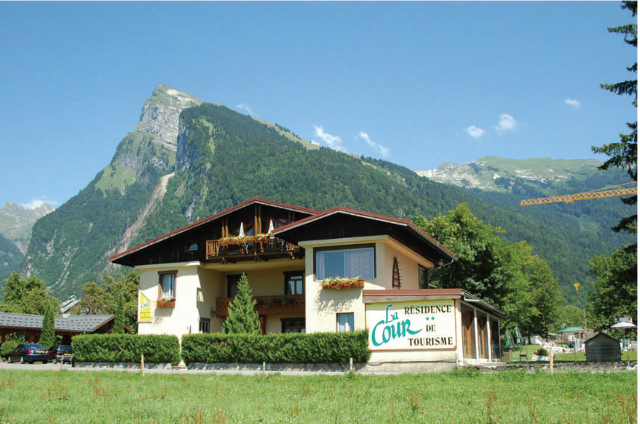 La résidence La Cour idéalement située été comme hiver, sur un petit chemin à 150m du centre village et 300m des remontées mécaniques. Catherine et Marc vous accueillent dans une maison de charme où règne une atmosphère familiale et douillette. Pour votre détente et confort, nous vous proposons toute l’année un bar « carnozet » (patois Savoyard) salon avec cheminée, écran plat et lecteur DVD. NOUVEAU pour cet hiver notre « Bulle détente » ouvre ses portes : un espace spa (jacuzzi – sauna), salon de massage et salon de repos vous attendent pour vous relaxer dans un univers nature, avec vieux bois, pierres et vue sur le Criou. En été : vous profiterez d’un grand parc, piscine et restaurant d’extérieur, local à vélo. En hiver : local à ski chauffé.