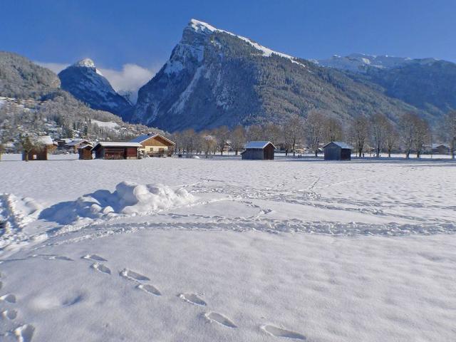 - Un Balcon (4,50m2 Est, vue montagne route), placard à skis.