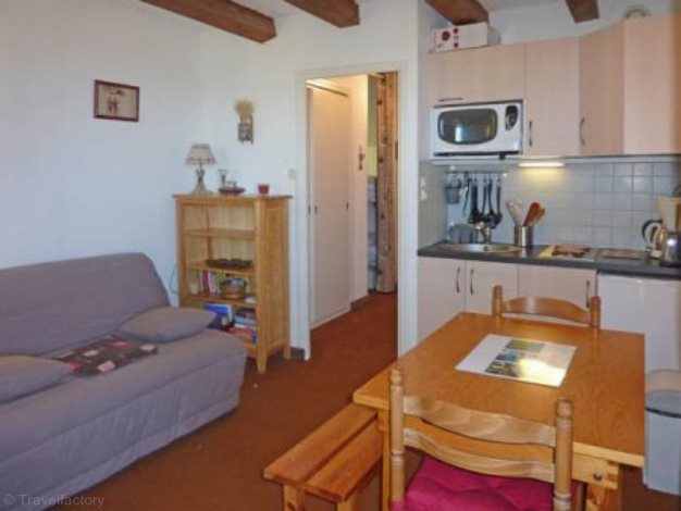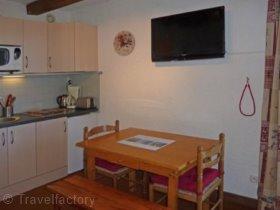 Petit appartement au bord d'une piste piste rouge et un peu plus haut une piste verte. Logement très bien équipé : vaisselle, rangement, chauffage… et local ski.