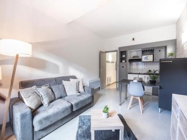 Il est composé d'une entrée couloir avec placard penderie,d'un séjour avec un canapé lit 2 personnes, téléviseur, kitchenette, et d'une salle de bains, lavabo, wc,