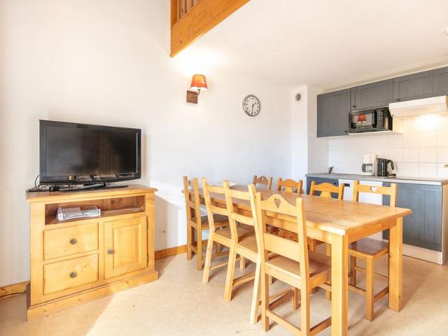 Grand Duplex 8 personnes à Saint-Sorlin-d’Arves d’une superficie de 54 m² possédant : - Séjour avec canapé-lit tiroir et télévision - Cuisine équipée (réfrigérateur, congélateur, four, micro-ondes, lave-vaisselle, bouilloire, vaisselle/couverts, grille pain, cafetière et ustensiles de cuisine). - Une chambre avec un lit double - Une chambre avec deux lits simples - Une mezzanine avec lits superposés - 2 salle de bain avec baignoires, 2 sèches cheveux et 2xWC. - Balcon - Un casier à skis - Fer à repasser - Lit bébé et réhausseur pour bébé - Pas d'accès wifi