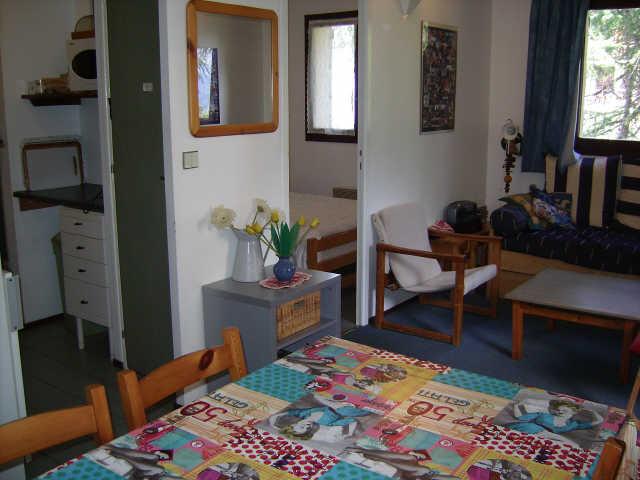 Appartement 3 pièces cabine de 41 m² en rez de chaussée de chalet. Ouverture sur l'exterieur, exposé Nord/Est. Il est composé d'un séjour avec un lit gigogne 2 personnes avec télévision, d'une chambre avec 1 lit 2 places en 140cm et d'une cabine avec 2 lits 1 places superposés. Le coin cuisine est équipé d'un lave vaisselle, d'un réfrigérateur, de 2 plaques de cuisson électriques, d'un four, d'un four à micro-ondes et d'une cafetière électrique. Salle de bain et toilettes indépendants.