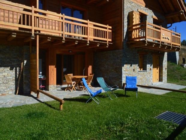 Composé d'une entrée avec des rangements, une chambre avec un lit double en 160 cm, une sdb avec douche, wc et lave-linge. Il y a également un séjour avec un canapé convertible et une téléviison avec une cuisine toute équipée :'un lave-vaisselle, plaques électriques, hotte, réfrigérateur, mini four. le tout donnant sur un petit jardinnet exposition sud avec vue dégagée. Le logement est loué avec un casier à skis et un garage.