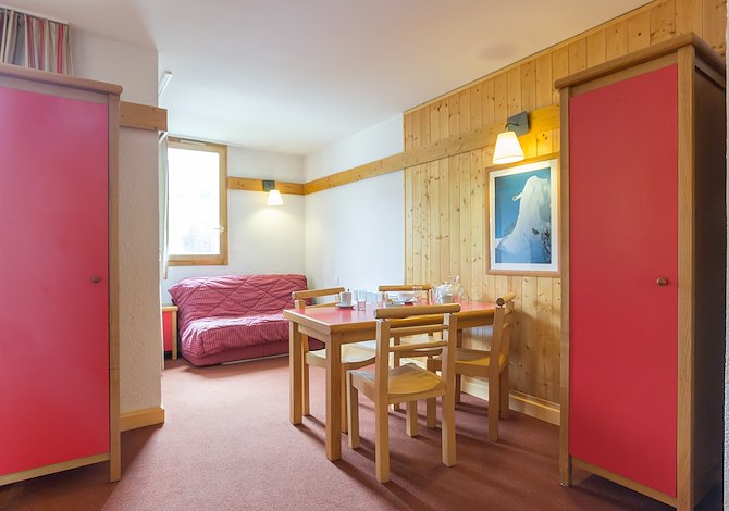Appartement Skissim Classic : Agréable et confortable. Balcon et exposition sud. Accès gratuit à la piscine extérieure chauffée de la résidence Les Lauzes située à 50 mètres. Tous nos appartements Skissim sont visités et sélectionnés par nos experts Ski.
