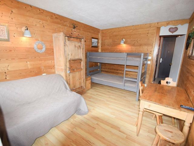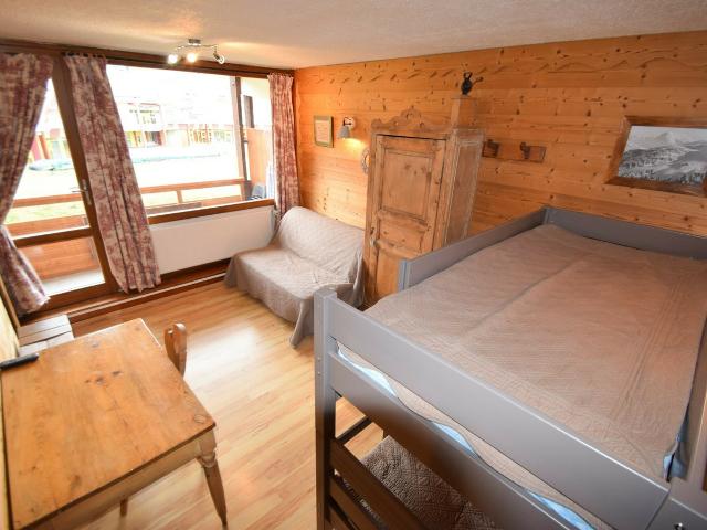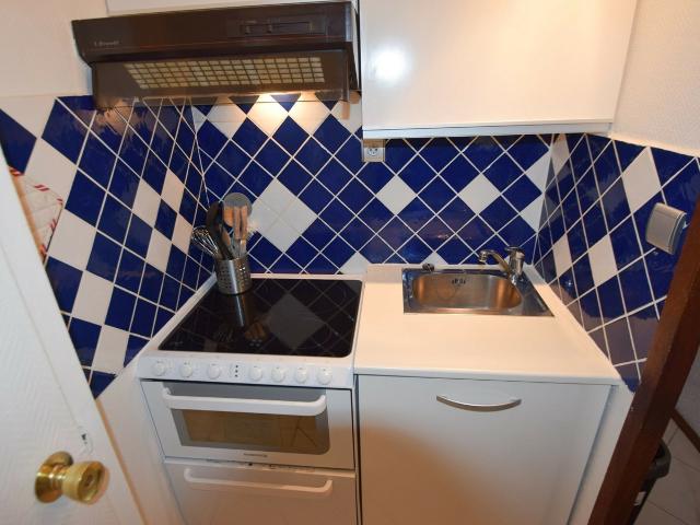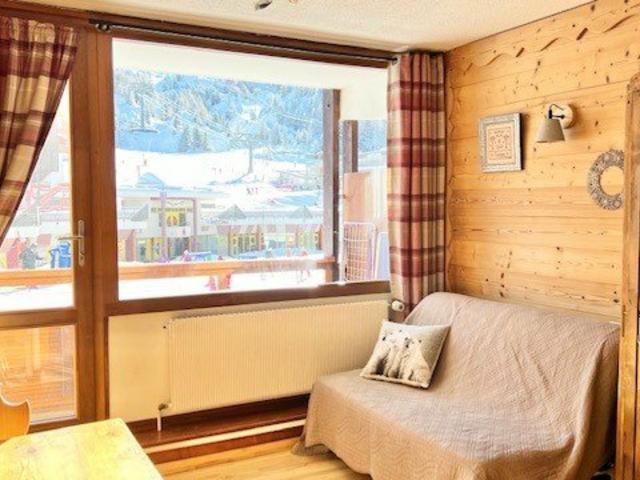 Studio 3/4 pers, 21m², balcon vue sur les pistes, 2ème étage avec ascenseur - Cuisine séparée : cuisinière 4 plaques avec mini-four, mini-lave-vaisselle intégré, réfrigérateur, four micro-ondes - Séjour : coin repas, TV, 1 canapé-lit BZ 2 pers, 2 lits superposés - Salle de bains : douche, WC inclus. Literie : couettes. Sols : carrelage pour entrée, cuisine, sdb et stratifié dans séjour. Ménage de fin de séjour, draps, serviettes et forfaits ski en option. Studio très agréable très bien placé avec une belle vue sur les pistes.