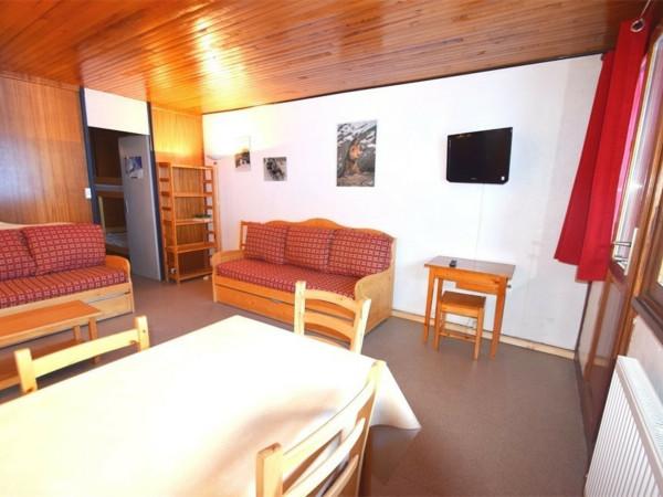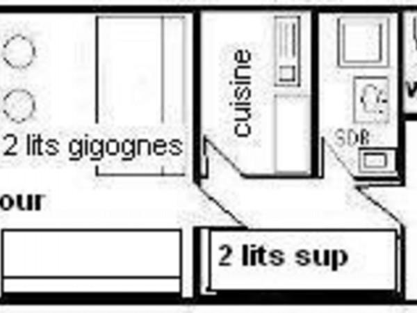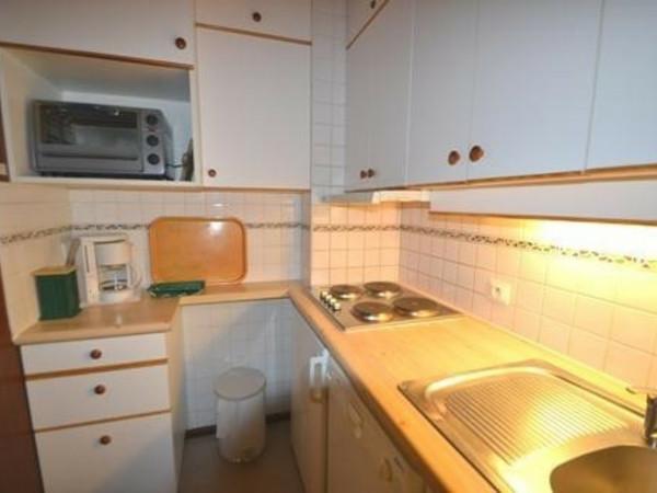 Studio Cabine 3/4 pers, 30m2 en rez de chaussée avec terrasse (déneigement non garanti) plein sud, vue sur les pistes - Cuisine séparée : 4 plaques électriques, four traditionnel, réfrigérateur, lave-vaisselle, cafetière électrique. Séjour : 2 lits gigognes 1 pers.,télévision - Coin Cabine : 2 lits superposés (70cm) - Salle de bains : baignoire - WC séparés. Literie : Couvertures - Sols : plastique sauf sdb : carrelage. Ménage de fin de séjour, draps, serviettes et forfaits ski en option. Appt très bien situé, en front de neige, AU PIED DES PISTES, très bonne exposition PLEIN SUD - Animaux non admis - Casier à skis n° 04 au RDC