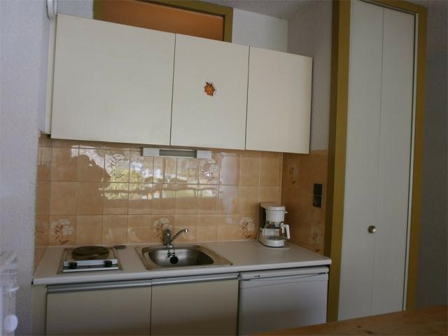 kitchenette équipée avec micro-ondes, cafetière électrique grille pain, bouilloire