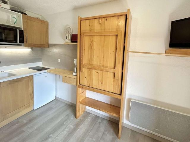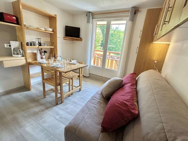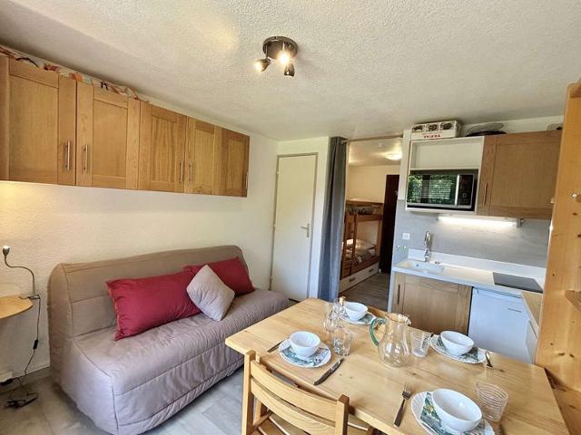L'appartement au rez-de-chaussée est composé d'une entrée avec 1 lit superposé (70x190) (le lit du haut ne convient pas aux enfants de moins de 6 ans), d'une salle de bains, d'un wc séparés, d'une kitchenette ouverte sur séjour avec 1 canapé 2 places style" BZ" (160x190), une télévision et un accès au balcon exposé Est.