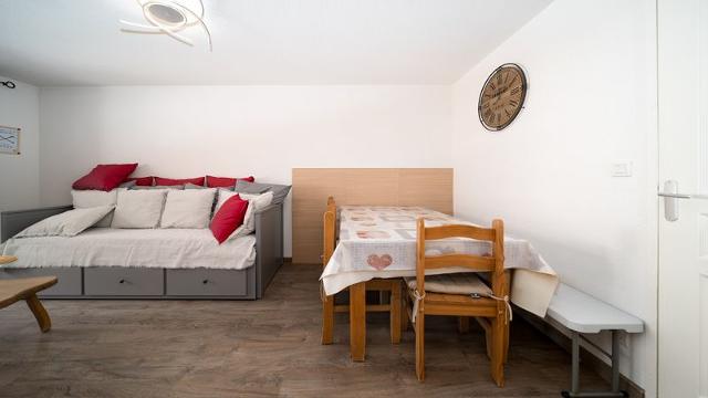 - Séjour avec canapé-lit (1x2 pers, 140x200)et télévision; - Grand balcon ; - Cuisine équipée (réfrigérateur, micro-ondes, four, lave-vaisselle, cafetière à filtres + cafetière à dosettes, bouilloire, vaisselle et ustensiles de cuisine) ; - Chambre cabine : lit double (1x2, 140x190) ; - Coin nuit : lits superposés (2x2 pers, 140x190) ; - Une salle de bain avec baignoire, sèche serviette et WC indépendants ; - Le logement dispose de casier à skis et d'un ascenseur ; - Le logement est équipé d'un lave-linge, d’un étendage, de couvertures et d’oreillers ; - Parking extérieur privé et gratuit (numéro 36).
